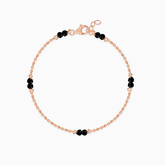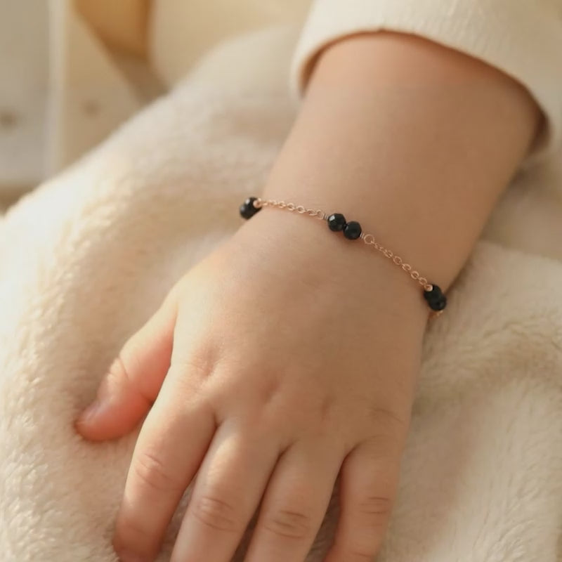 Playful yet polished, this silver bracelet for kids features rose gold plating paired with striking black beads for a sweet contrast. A cheerful design that feels fun, modern and full of personality.