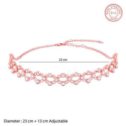 This rose gold necklace features an oval motif with four zircons placed on it.