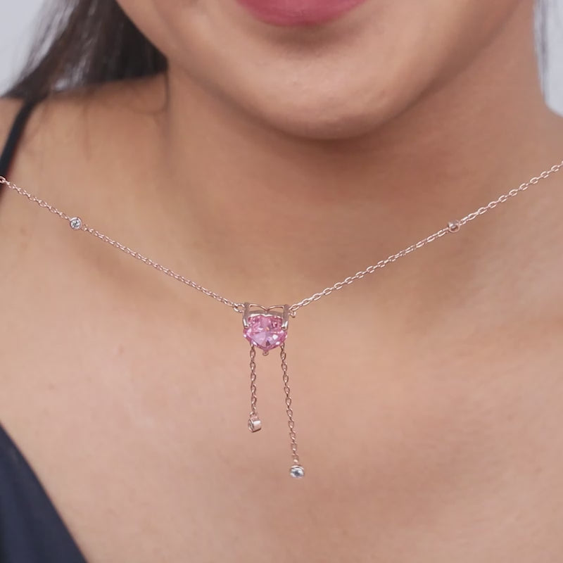 She is expressive, confident, and drawn to jewellery that feels romantic yet modern. This silver necklace with rose gold plating features a pink heart-shaped ice-cut gemstone, finished with cascading chains set with zircons for graceful movement and shine. This Valentine’s, we're bringing to you - All Yours - our signature ice-cut stones in soulful shades, because some emotions deserve more than words.
