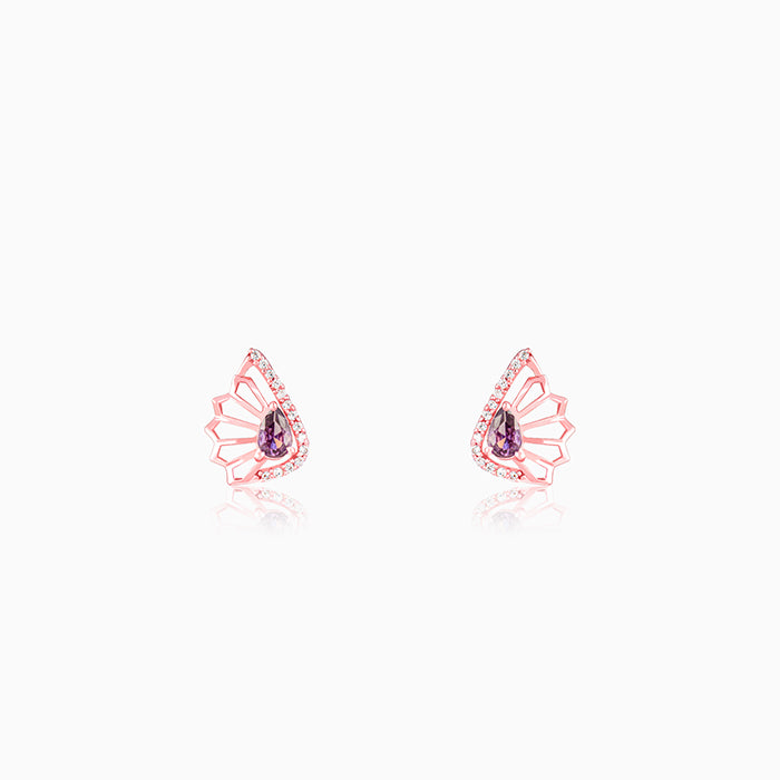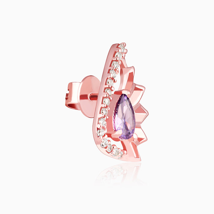 The rose gold earrings captivate the essence of the beautiful Notre Dame in its design with a very peri-coloured stone placed at the centre and white zircons studded on the frame.