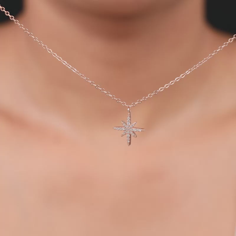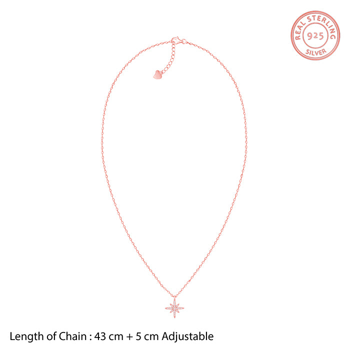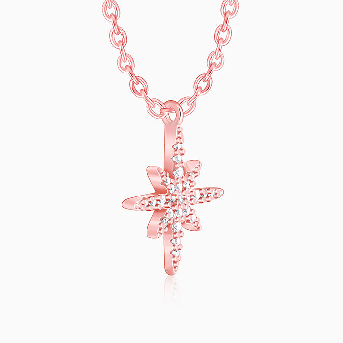 Shine as brightly as a celestial body with this guiding light design. Crafted in a warm rose gold-plated finish, the starburst pendant is fully set with zircons that capture the dazzling sparkle of a clear night sky.