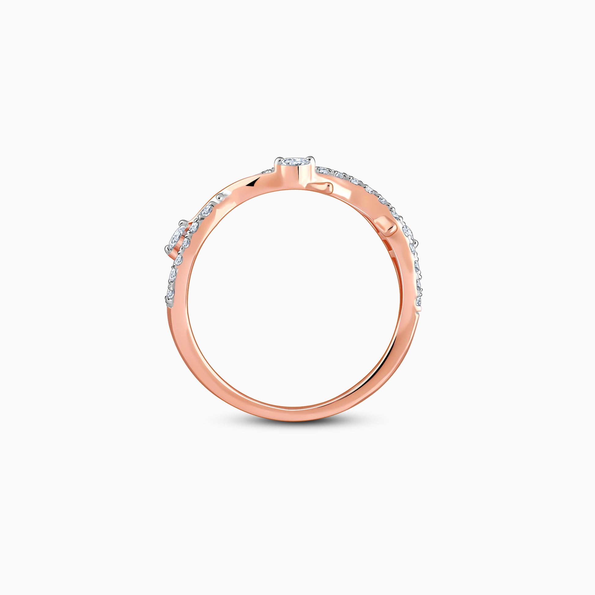 This rose gold ring for women features a branch-inspired design, with one branch lined in sparkling lab grown diamonds. A single lab diamond sits at the intersection, creating a striking focal point in this nature-driven silhouette.