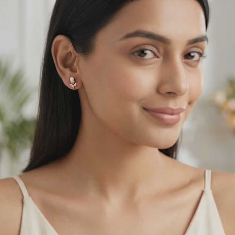 Capture the fresh elegance of a garden in bloom with a design that reinvents the classic floral. These earrings feature a pearl bud at the centre, anchored by shimmering zircon-studded leaves for a touch of natural brilliance.