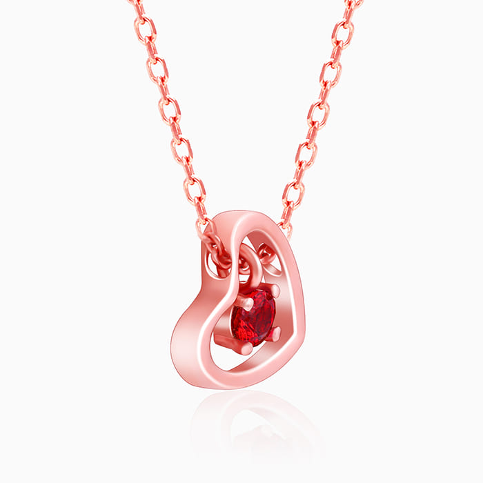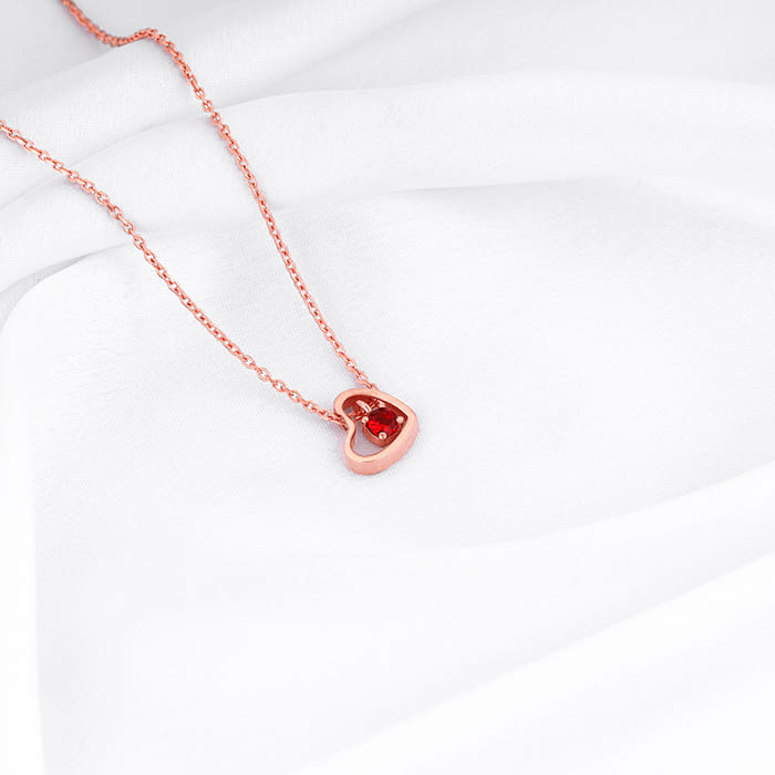 This rose gold necklace has a heart design with a rose gold finish and a studded red stone that dangles inside the heart. Celebrate your moments of passion with GIVA’s Red Romance Collection.