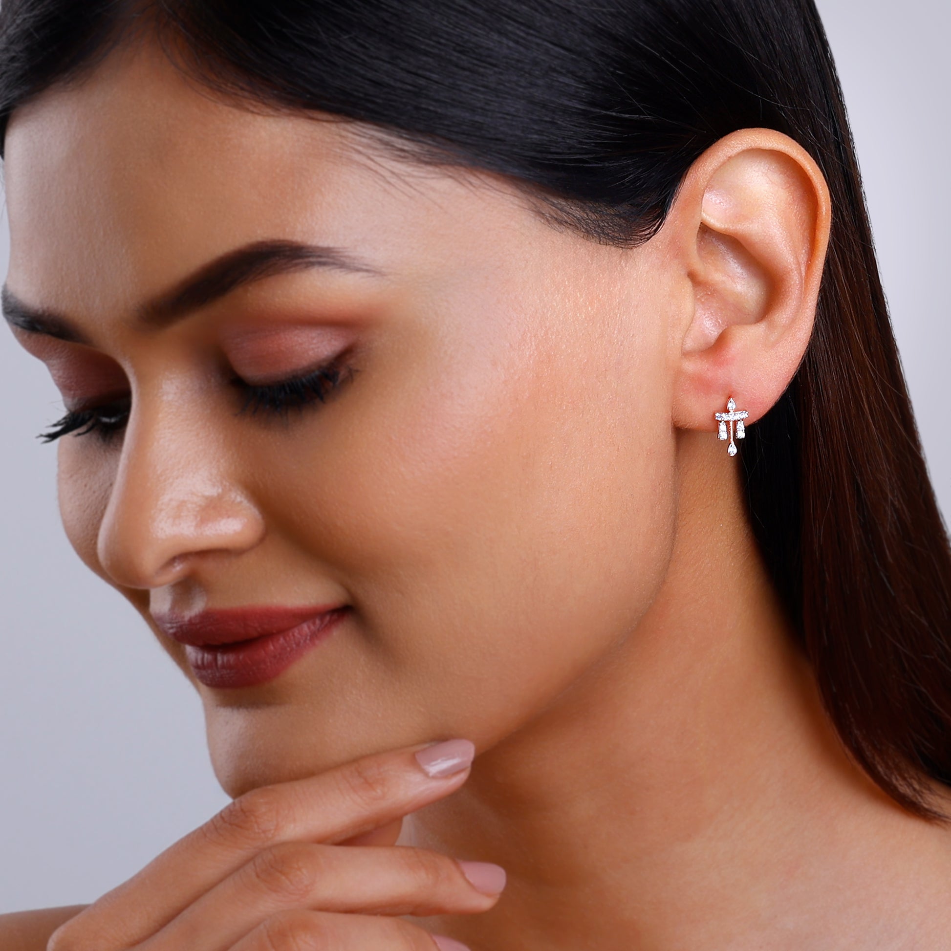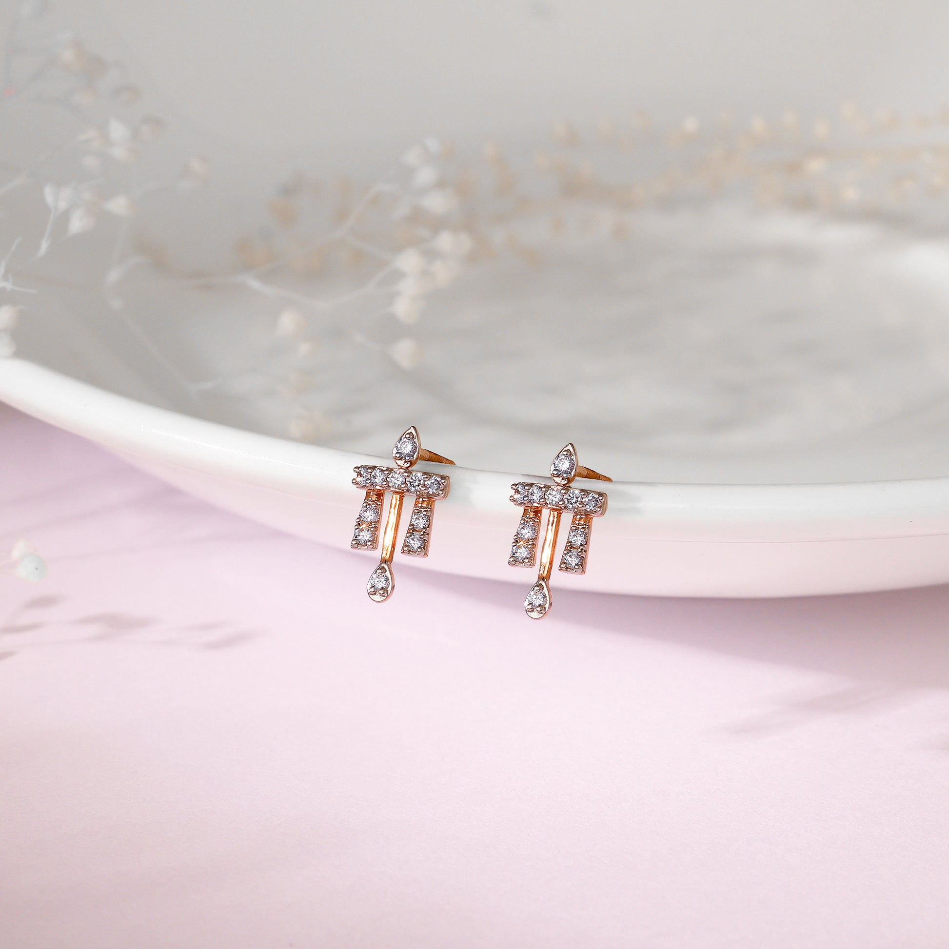 These pure rose gold earrings have a unique and classic design studded with lab-grown diamonds.