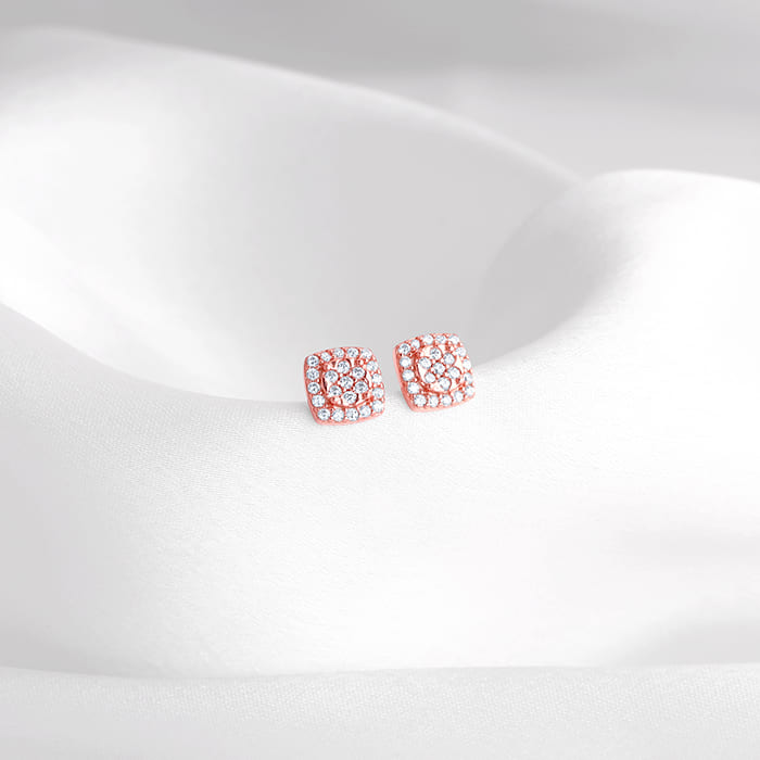 Rose Gold Zirconia Square Earrings