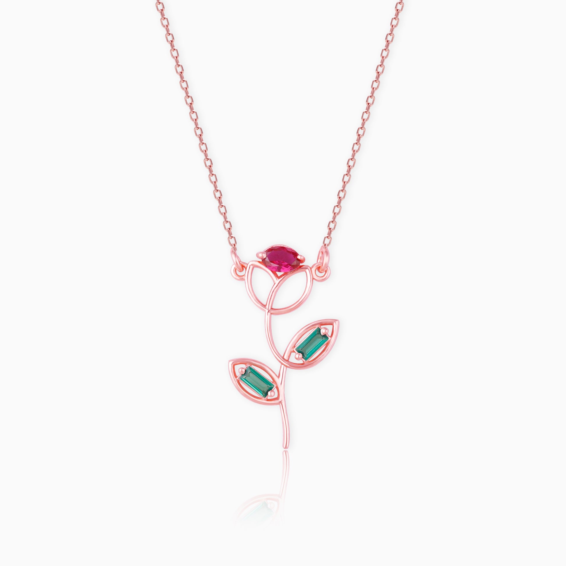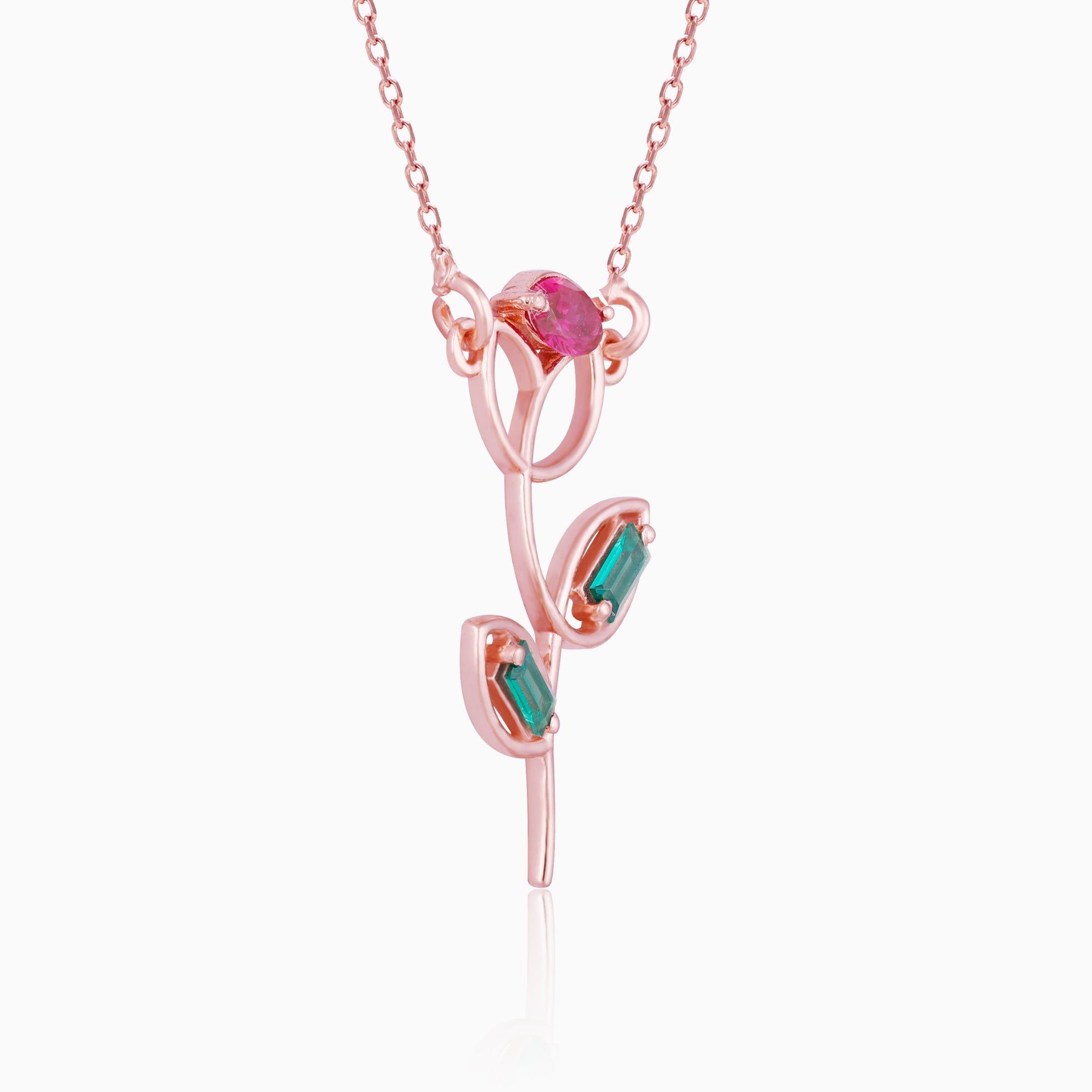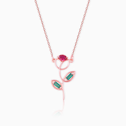 The Rose Gold Classic Rose Necklace has a unique rose charm with coloured stones.