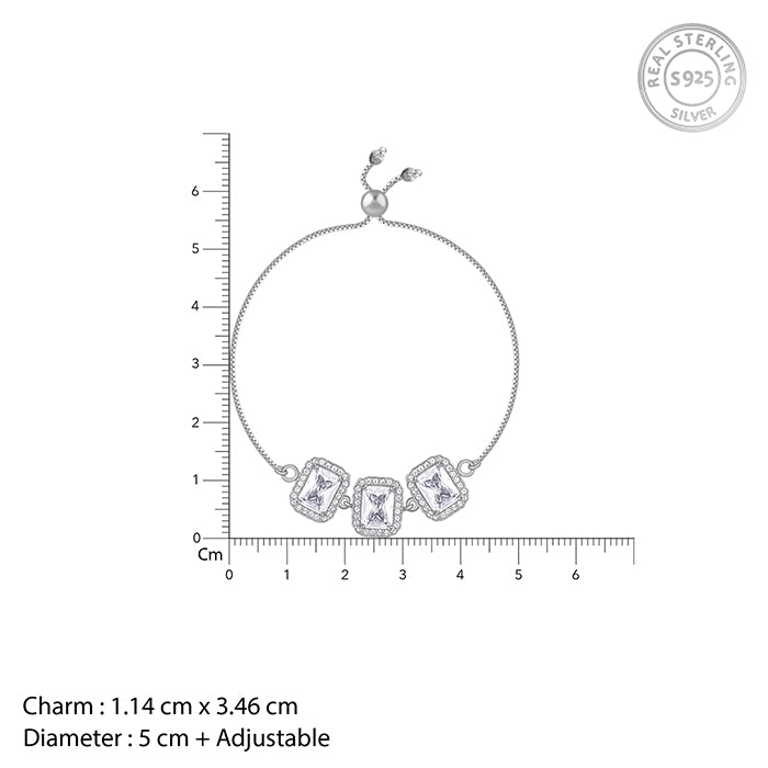 Made for women who like their shine sharp, playful, and always a little ahead of the plan. This silver bracelet for women with baguette-cut zircons takes centre stage, ringed by sparkle-boosters and finished with a sleek adjustable chain.