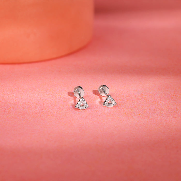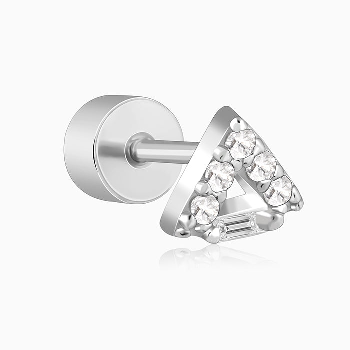 This pair of helix ear piercings features a hollowed-out triangular motif studded with shiny zircons. Got multiple piercings? Get ready to curate your unique ear story! Mix, match, and express your personal style with our latest collection.
