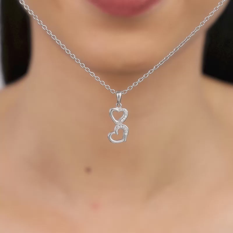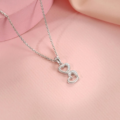 This women's silver pendant features a dual heart design partially studded with zircons.