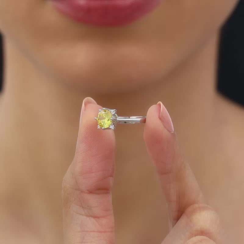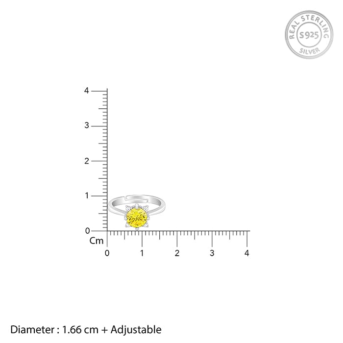 This silver ring features a single-stone amber coloured zircon, that is set inside a flower frame.