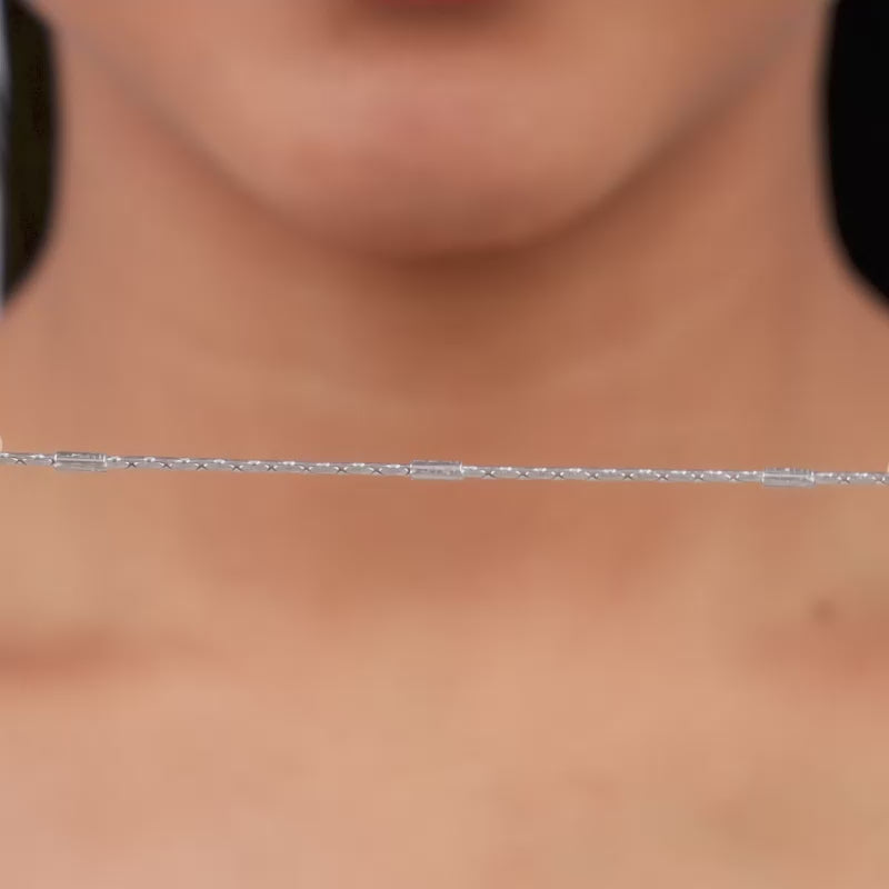 This silver chain for women features a bar design evenly spaced along an anchored chain.