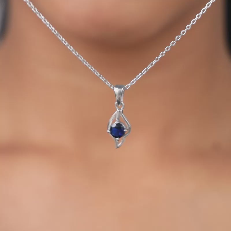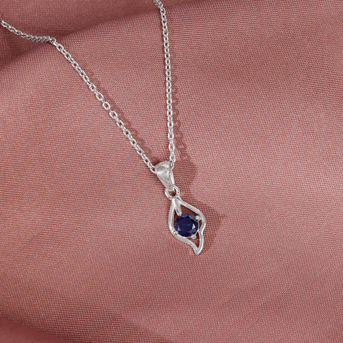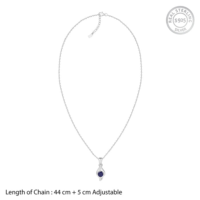 This silver pendant for women features a leaf-inspired design. A blue-coloured zircon is placed at the centre. This silver pendant comes with a link chain.