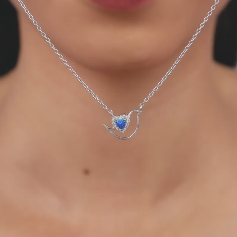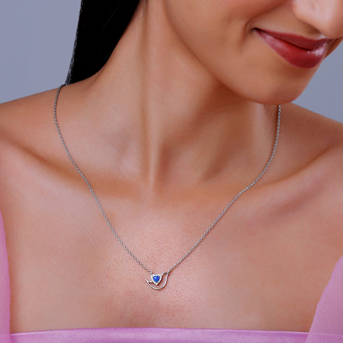 This silver necklace features a bird motif with a heart within. The heart is set with a blue opal stone and surrounded by zircons. Let the stunning elegance of GIVA Sky High inspire you to chase every dream and celebrate every milestone.