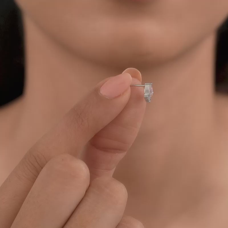 These ear piercings for girls feature a teardrop-shaped crystal zircon at the centre. A cluster of smaller zircons beautifully frames it.