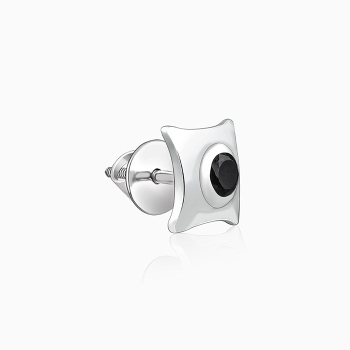 This silver stud for men features a square design with softly curved edges. At the centre, a circular coloured zircon is bezel-set, creating a striking contrast.