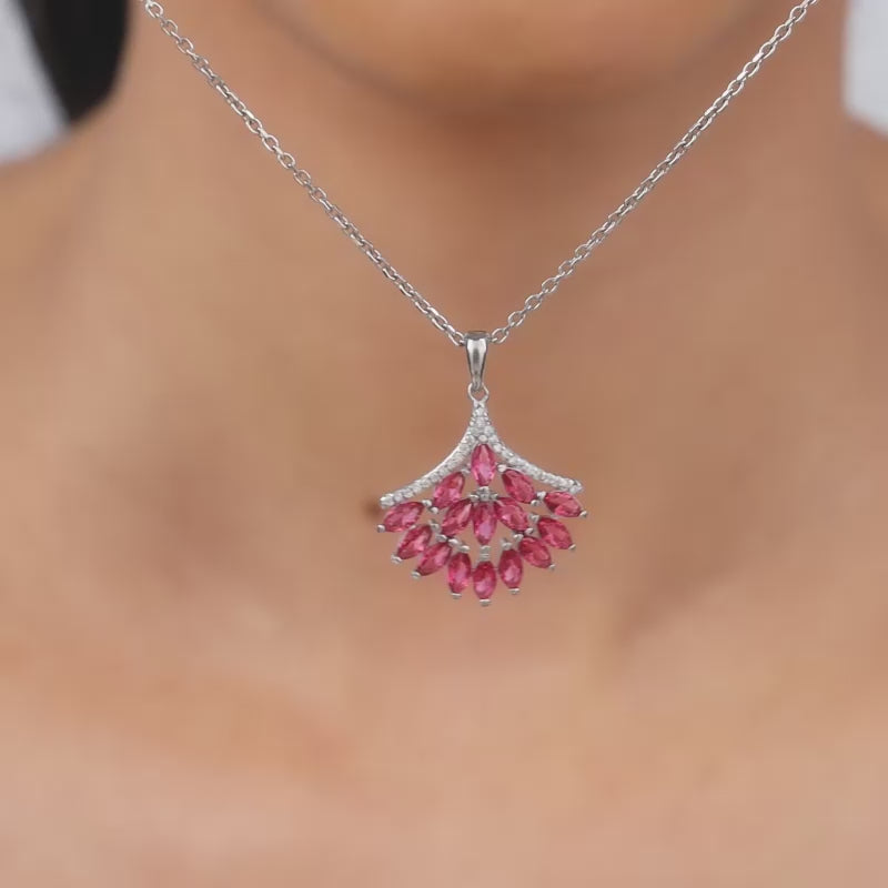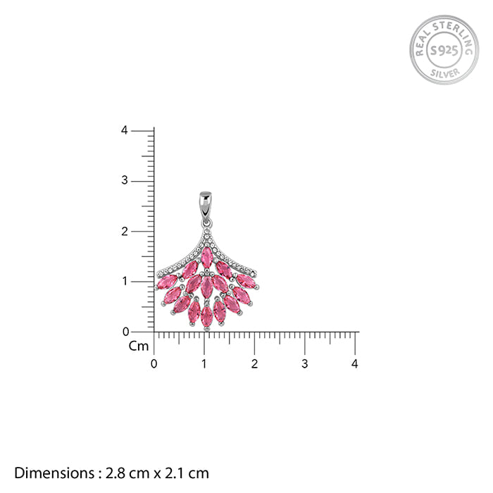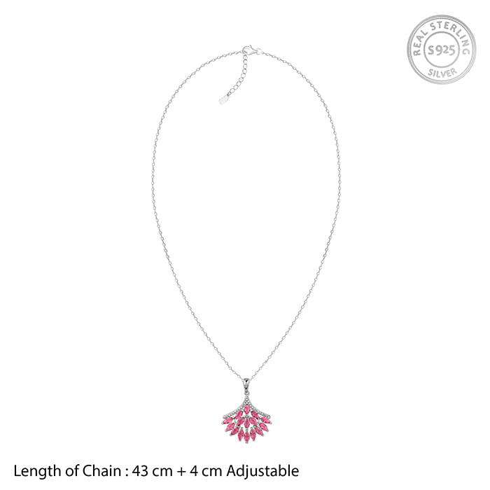 This silver pendant with a link chain features a floral design with sparkling zircons and pink-coloured stones as petals.