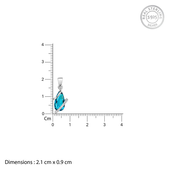 This silver pendant features a blue-coloured stone with a zircon-studded ring around it.