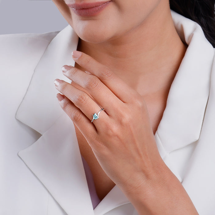 This silver womens ring features a natural pear-cut blue topaz stone in a tension-style setting. Graceful curves on each side meet and cradle the central stone, creating a modern and flowing design. From nature’s heart to yours - GIVA's natural Gemstone Collection makes every occasion special, whether you’re gifting a loved one or treating yourself.