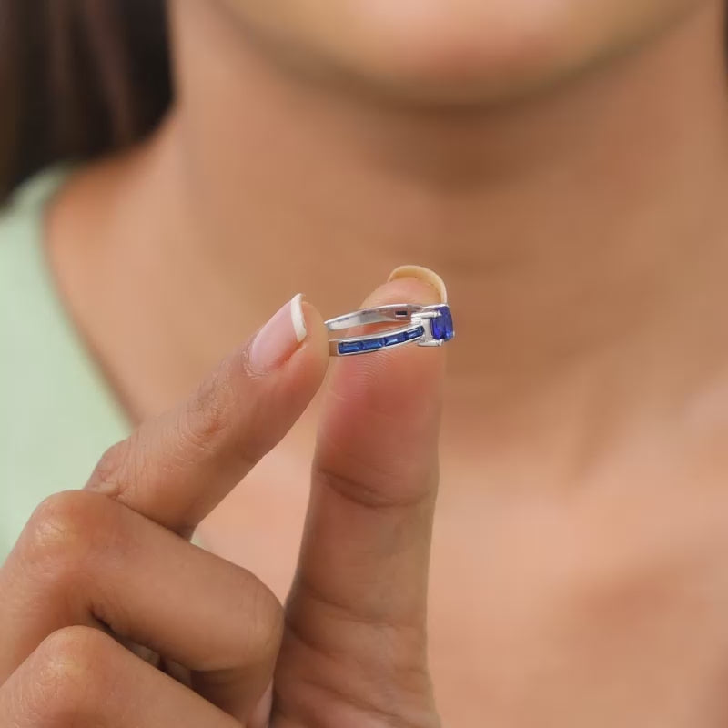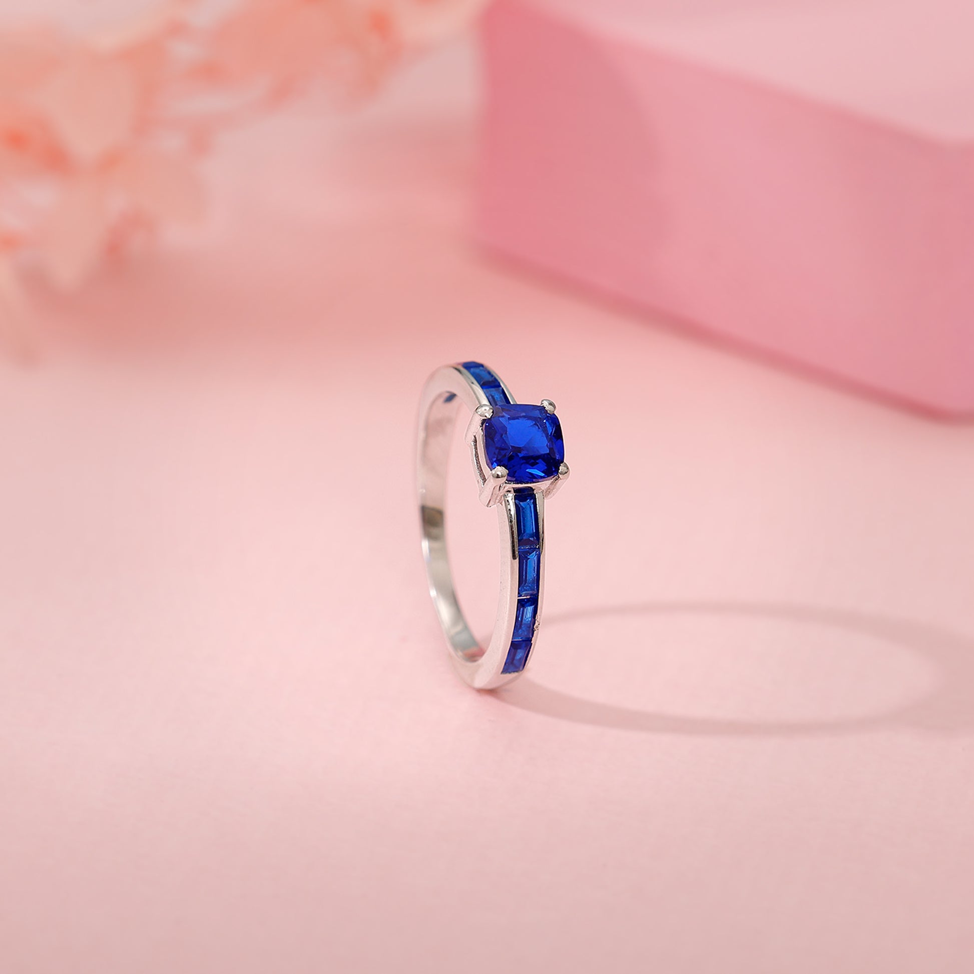 This silver ring for women showcases a blue-coloured zircon at the centre, with additional coloured zircons on the band. Fall in love all over again with our exclusive Valentine’s Collection: #WhatTheHeartWants. Here are our curated designs that will speak to your heart.