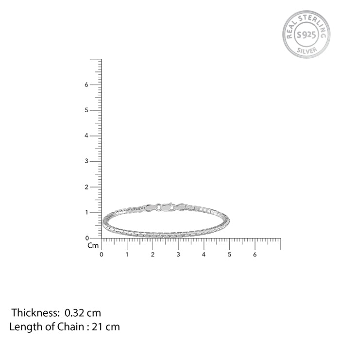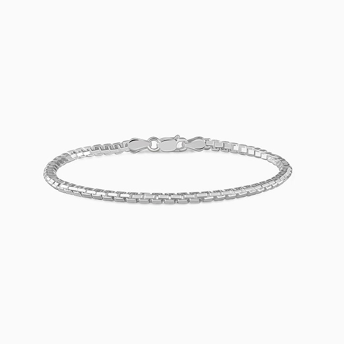 This silver bracelet features a classic box chain design that catches the light with every movement. Perfect for daily wear or layering with other pieces, making it an essential accessory for any look.