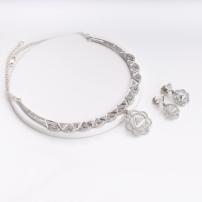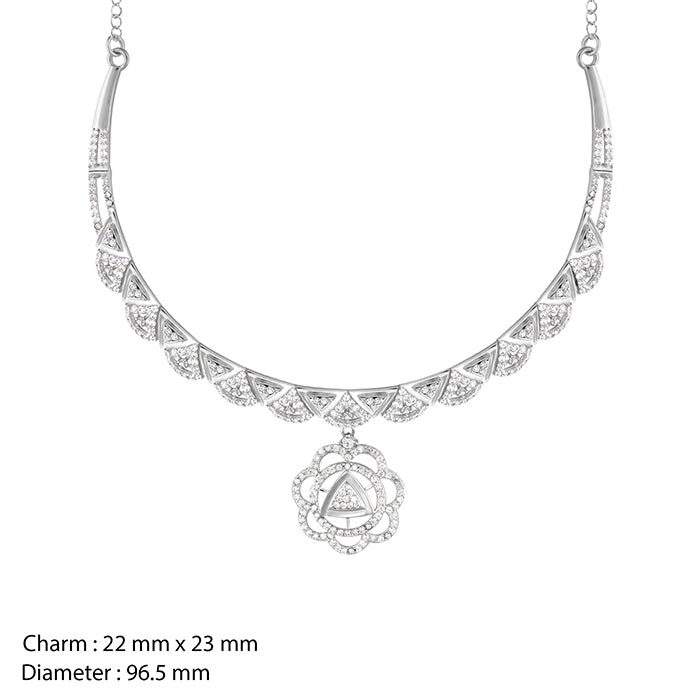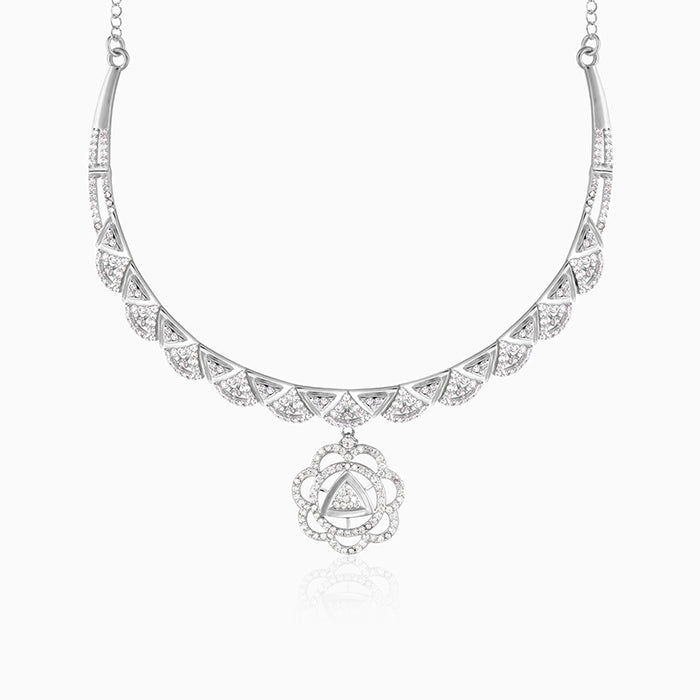 The Silver Floral Shine Necklace is inspired by floral design enhanced with intricate triangle shapes.