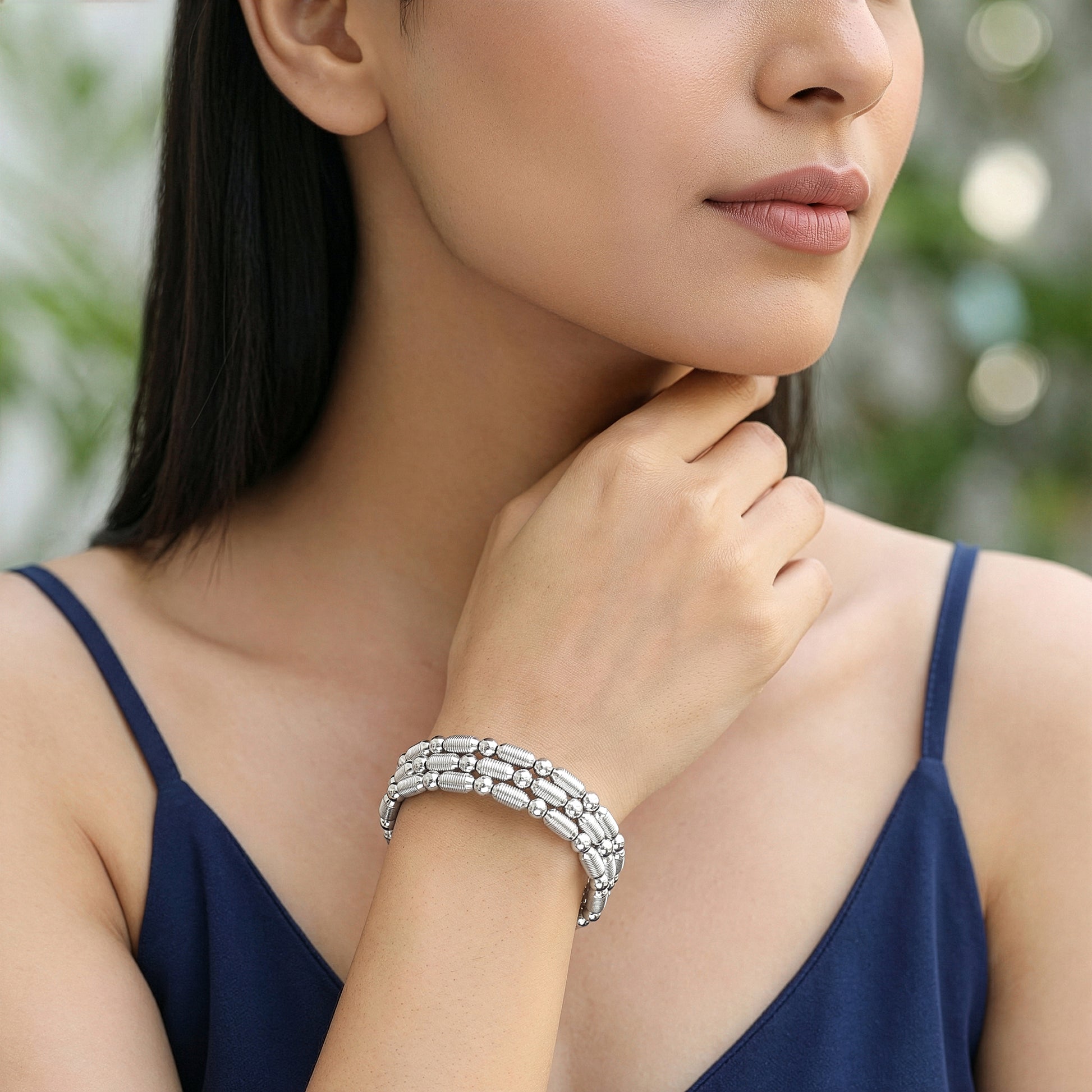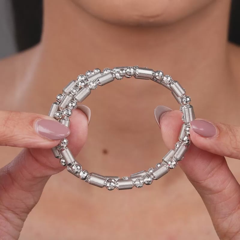 When life spins a little too fast, let this spiral bracelet be your tiny pause. Its two differnt graceful beads and subtle glow are a gentle nudge to breathe, find your balance, and carry calmness with a hint of effortless glamour. Barkha Singh x GIVA brings to you the Glow in Motion collection that celebrates CNC craftsmanship for the first time in silver.
