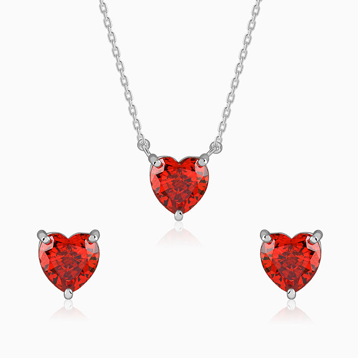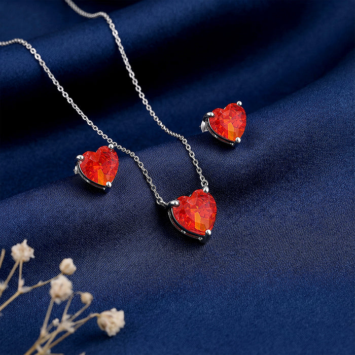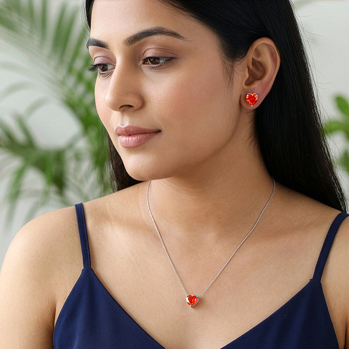 Let your style speak the language of love and confidence. This red ice-cut heart stone jewellery set for women effort...