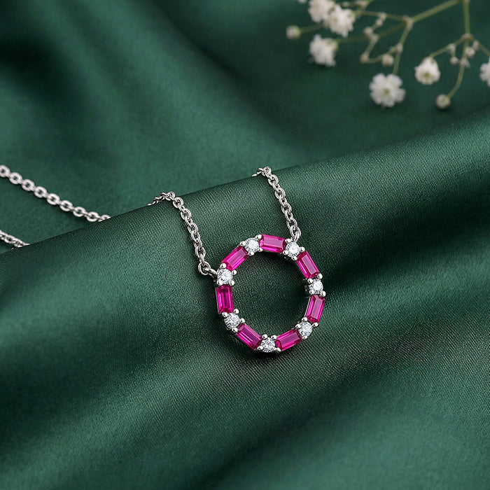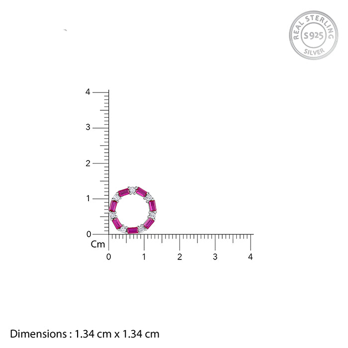 Own your spotlight with a piece that balances vibrant energy and classic poise. This silver pendant features a halo of deep pink rectangular zircons alongside shimmering white zircons, encircling a brilliant centre.