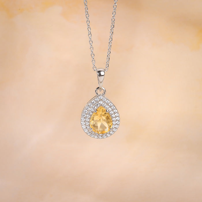 This silver womens pendant features a natural drop-shaped Citrine stone at the centre. It is beautifully surrounded by zircons. This pendant comes with a link chain. From nature’s heart to yours - GIVA's natural Gemstone Collection makes every occasion special, whether you’re gifting a loved one or treating yourself.