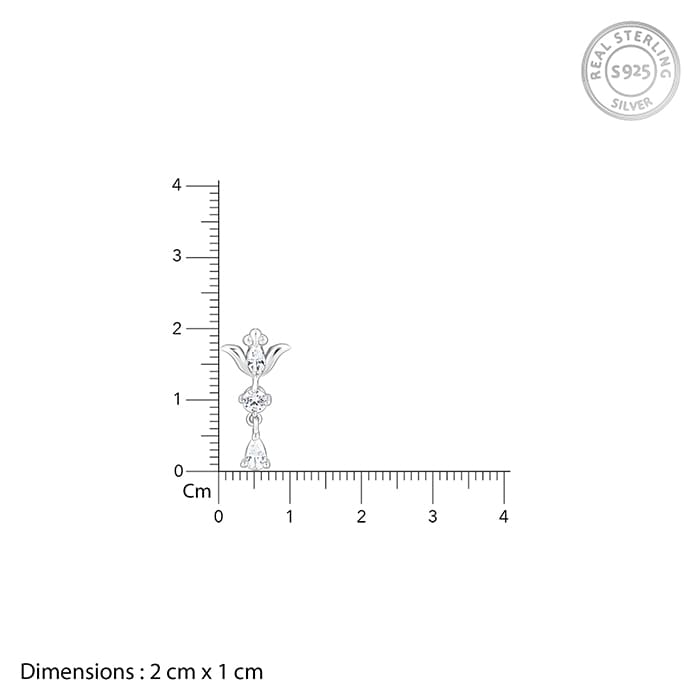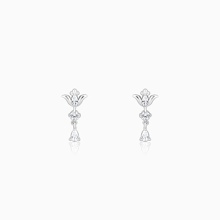 These silver earrings feature a unique design with a teardrop motif found all over the chain, studded with zircons.