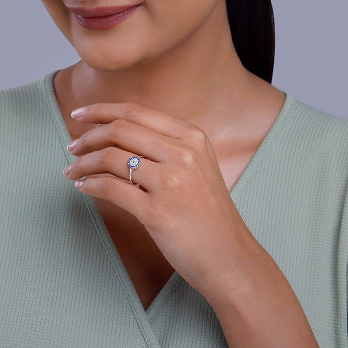 This silver ring for women features a circle design studded with coloured stones and zircons. Fall in love all over again with our exclusive Valentine’s Collection: #WhatTheHeartWants. Here are our curated designs that will speak to your heart.