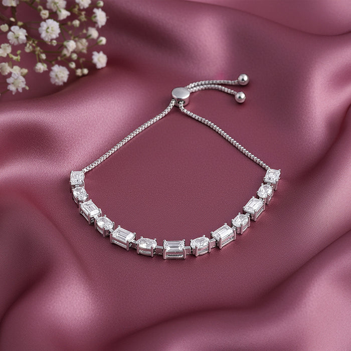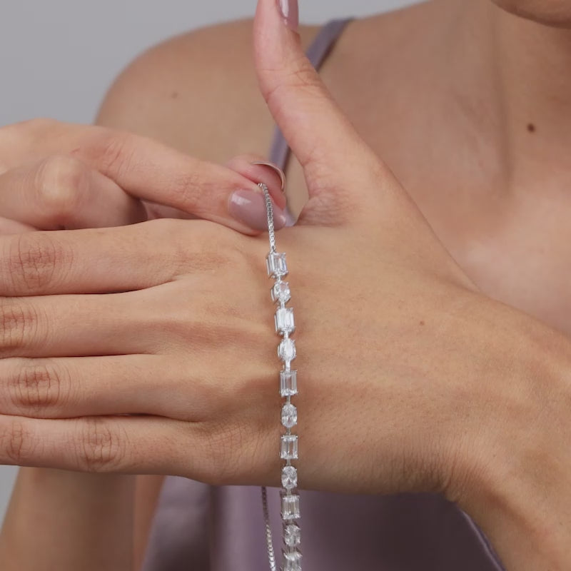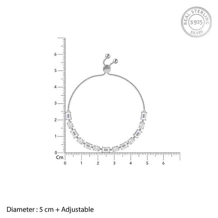 Why choose one vibe when you can wear both? This silver classic flex bracelet plays with contrast through rectangular and oval baguette-cut zircons, adding just the right mix of structure and softness to your everyday shine.