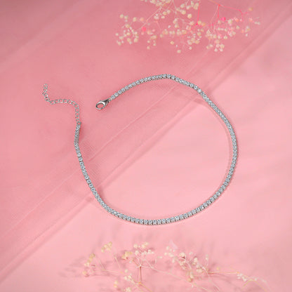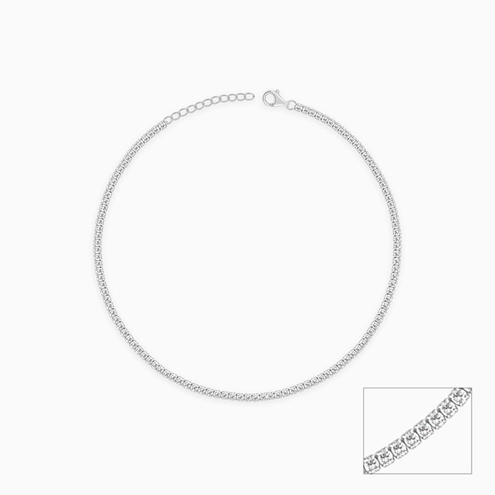 This silver tennis anklet for women features a row of sparkling zircons along the entire band.