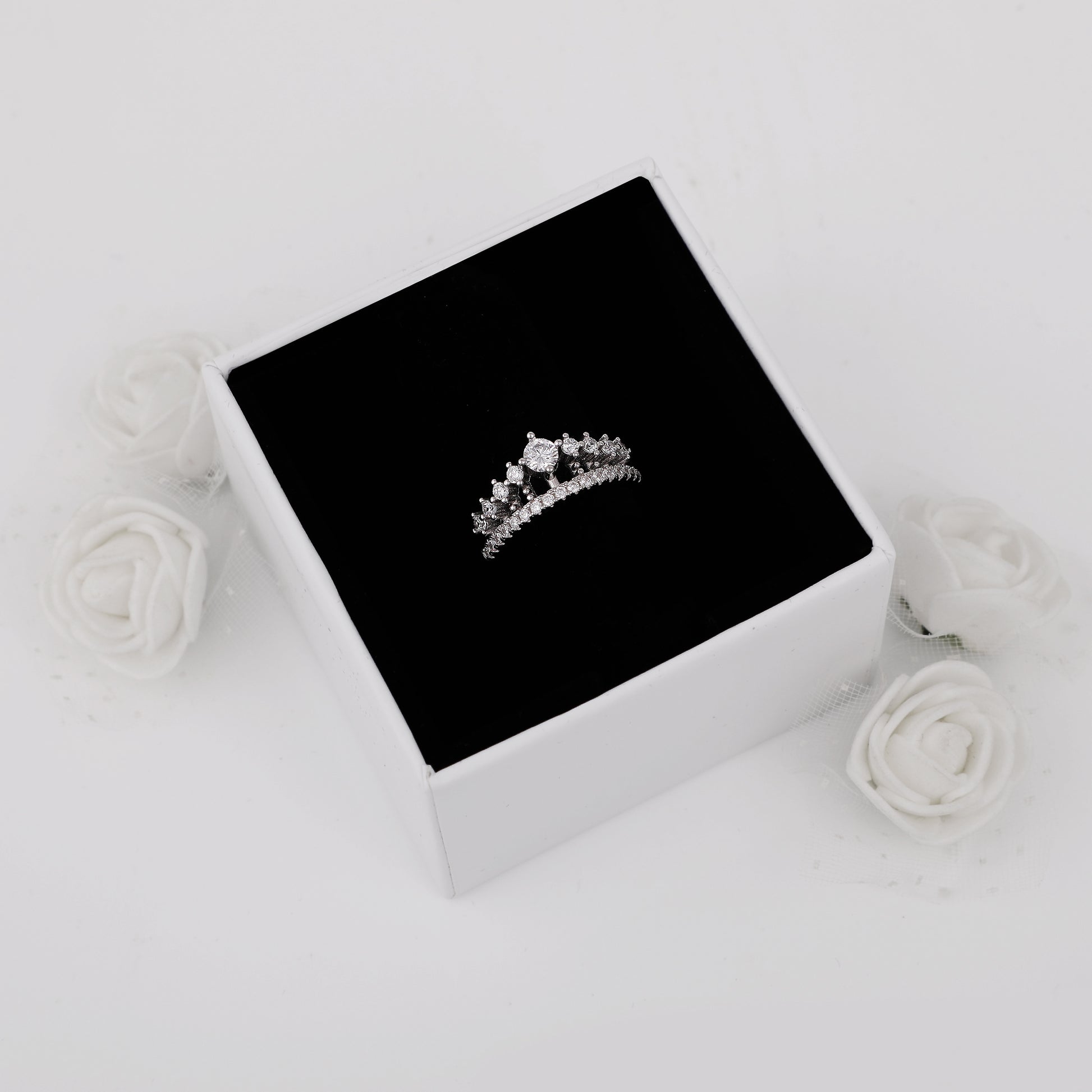 - Includes the Esha’s Queen’s Crown Ring, Silver Pearl Flower Ring and Silver Zircon Crown Heart Ring