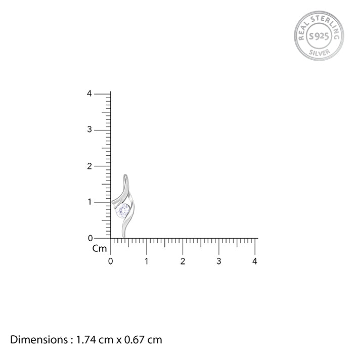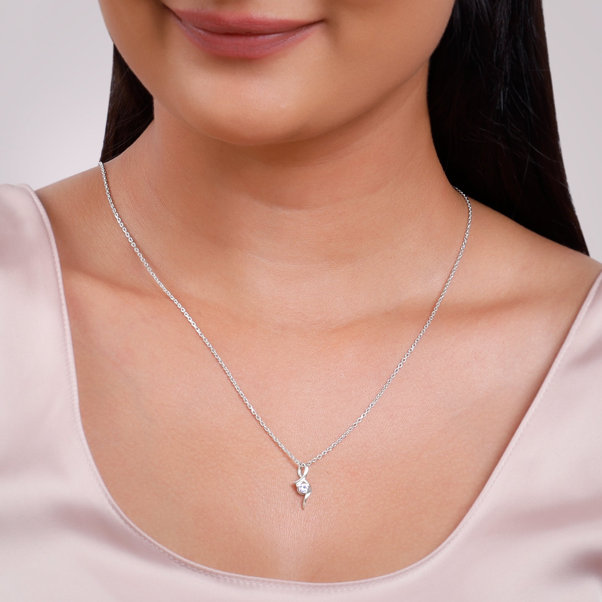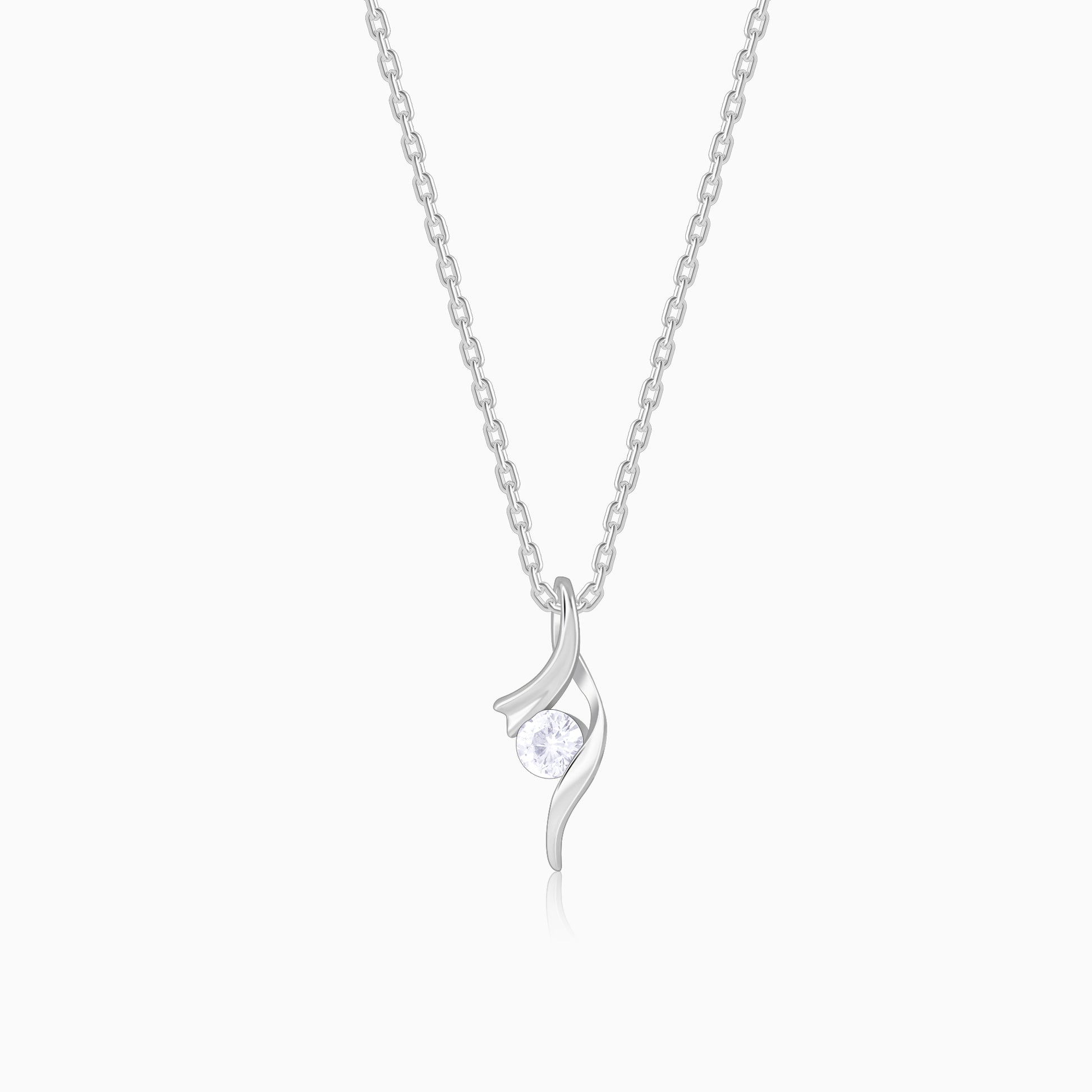 This silver pendant for women features flowing curves that wrap a zircon at its centre. This pendant comes with a link chain.