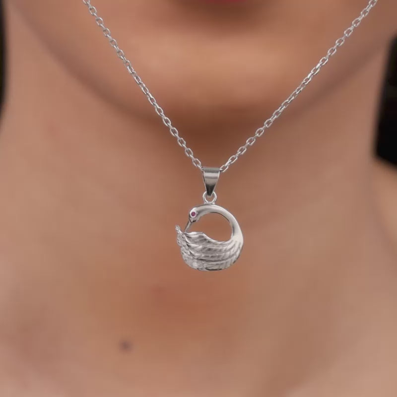 This silver pendant for women features a stylised swan design, with enamel detailing used for the eye.