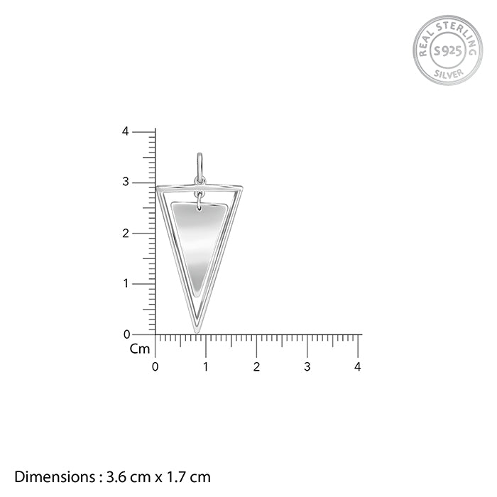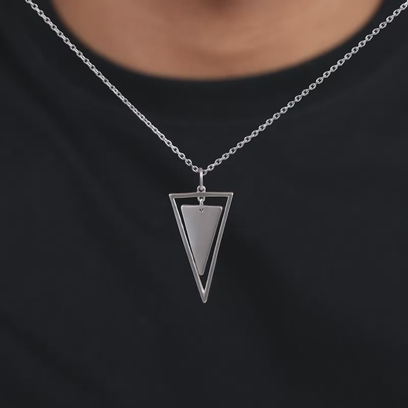This silver pendant for him features a dual-design triangle. This pendant comes with a box chain.