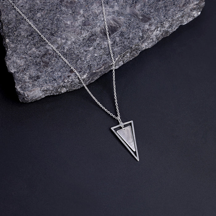 Silver Classy Triangle Pendant With Box Chain For Him