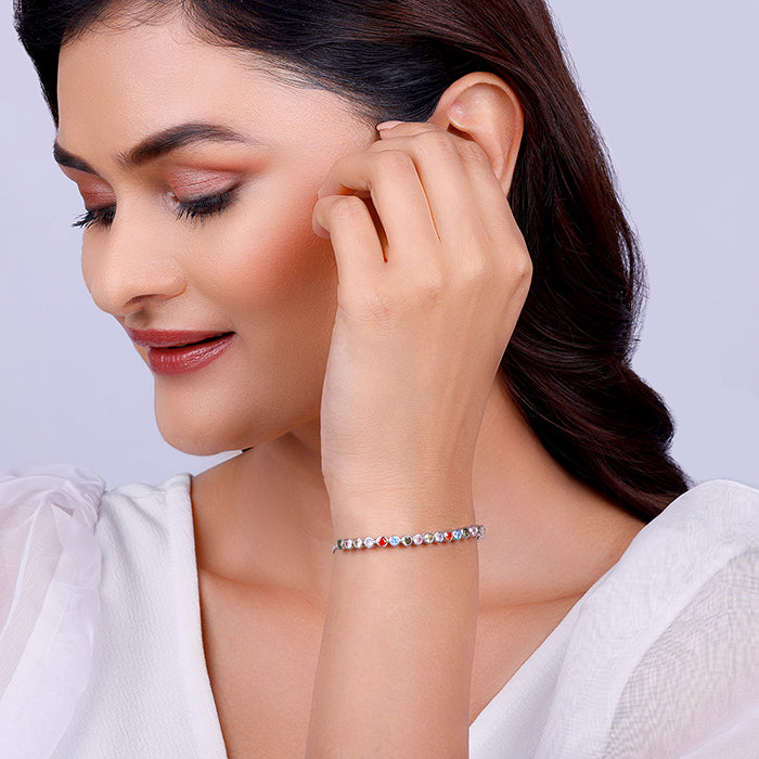 Ideal for those who prefer coordinating their accessories with their attire, this bracelet with multi colours making it a versatile choice for any outfit.