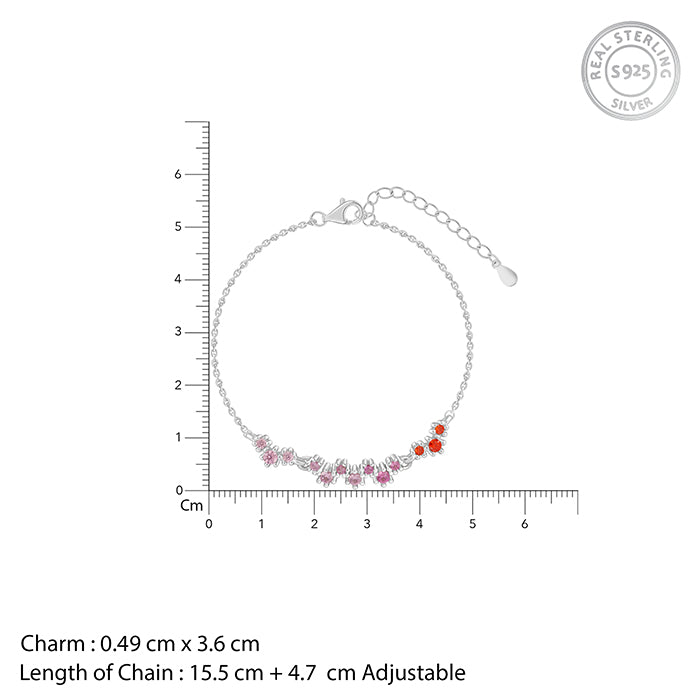 This silver bracelet for women features coloured zircons placed along the bracelet chain.