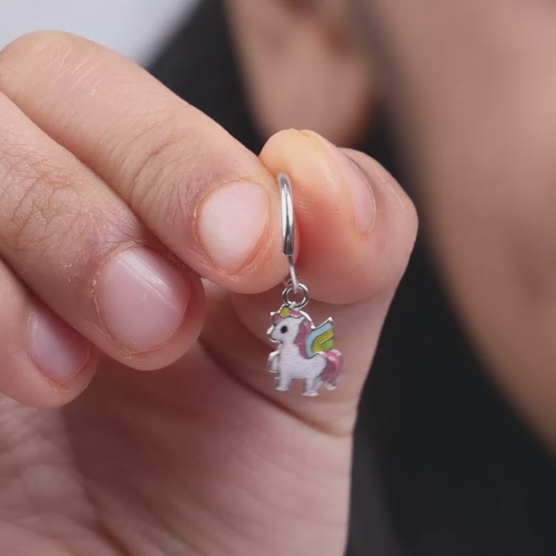Silver Colourful Unicorn Kids Hoop Earrings (4-12 yrs)