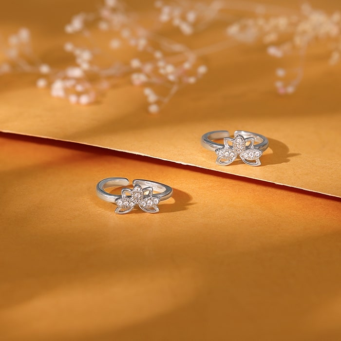 Blending celestial charm with floral grace, our Silver Crescent Flower Toe Rings are born.