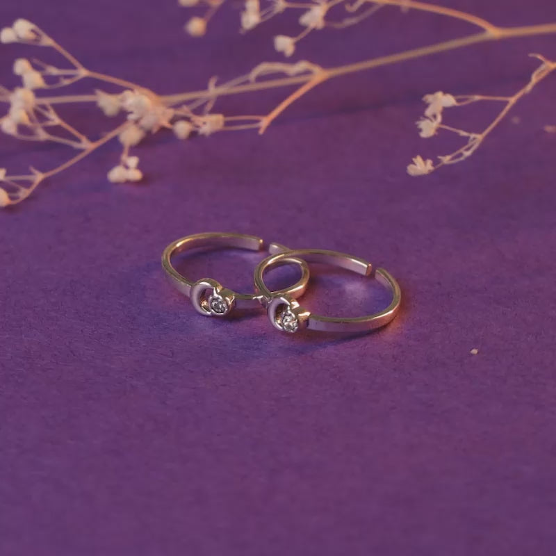 These silver toe rings for women feature a crescent moon design with a circular zircon attached.