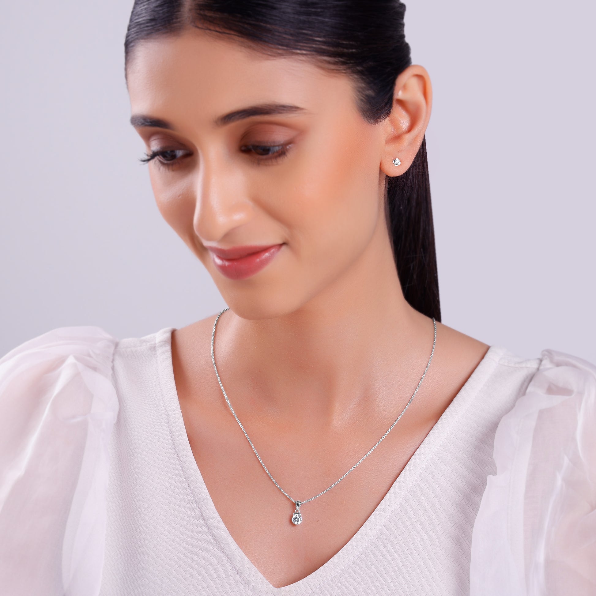 This pendant and earrings set isn’t just jewellery, it’s a little sparkle that keeps you shining all day. Every zirco...