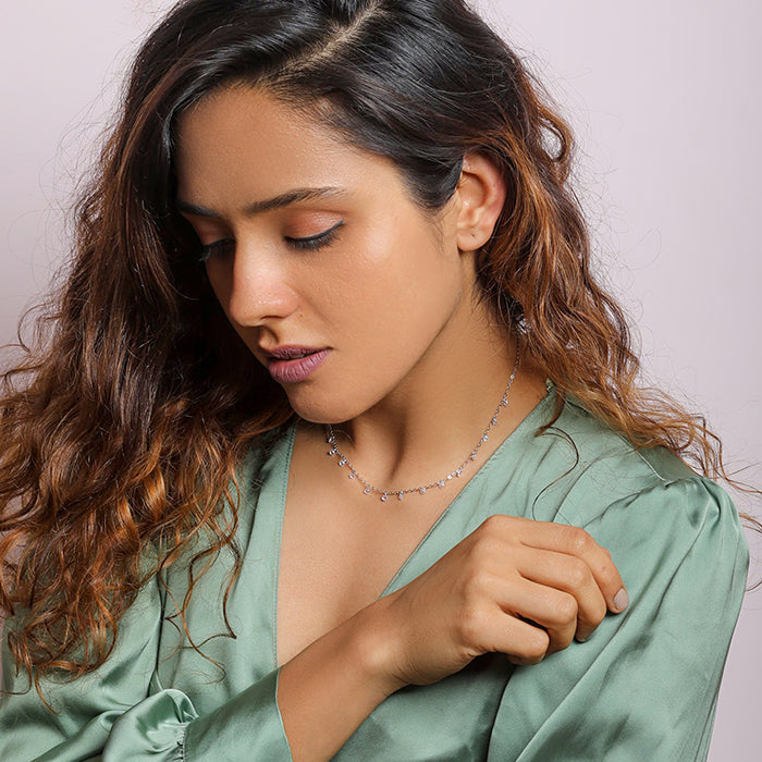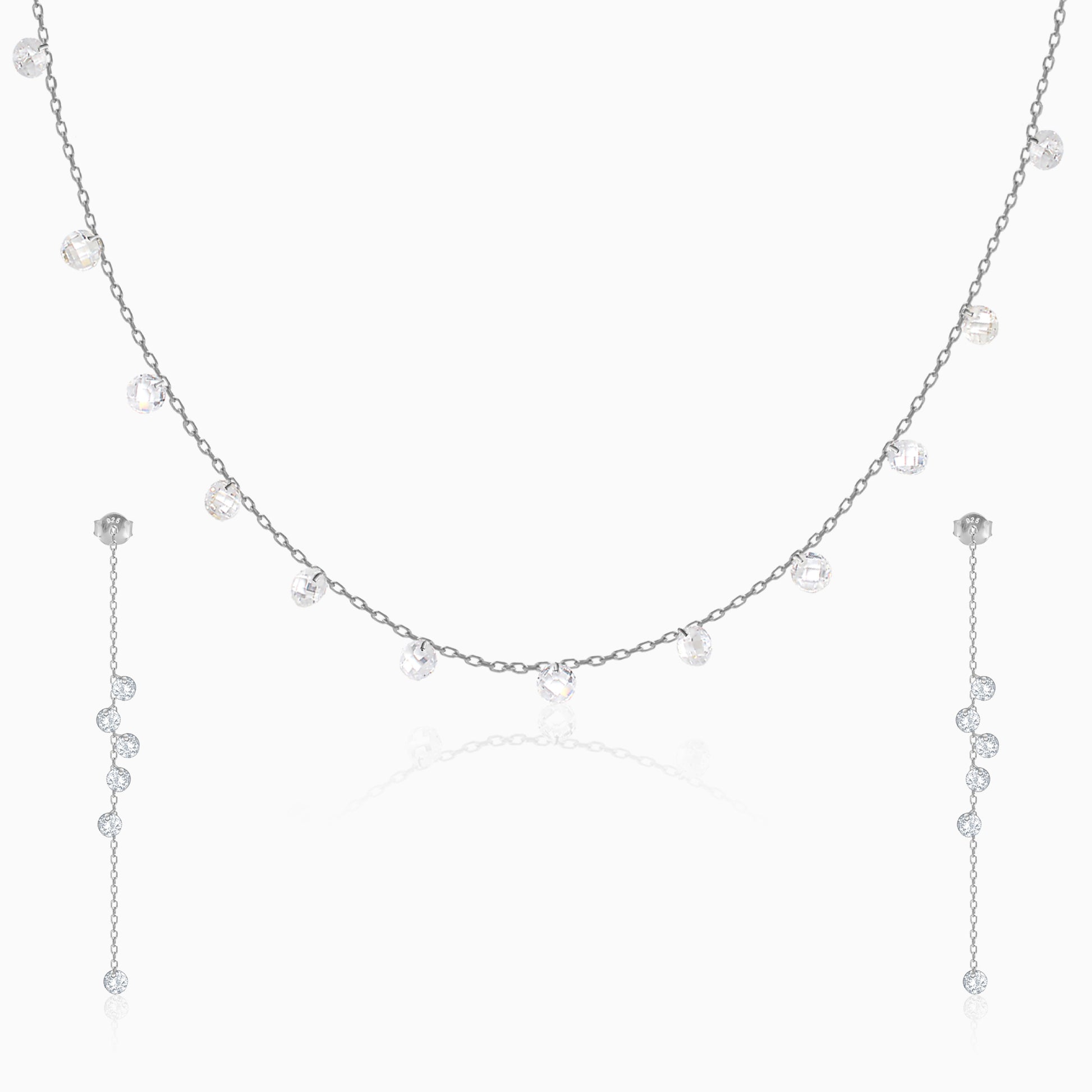 The Silver Dangling Queens Set has zircons crystals strung together in a silver frame