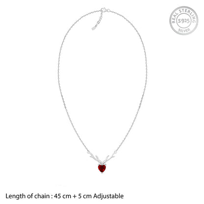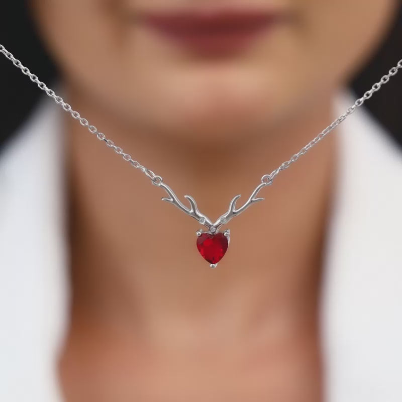 The Silver Deer Heart in Red Necklace is inspired by the beauty and elegance of the deer.