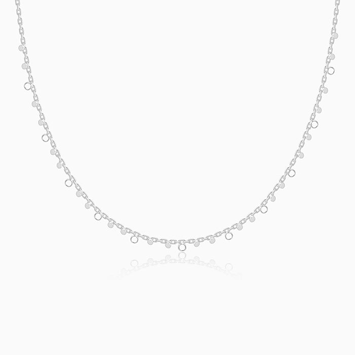 This silver necklace for women features alternating tiny disc charms. It also includes open-circle loops for a playful, modern look.