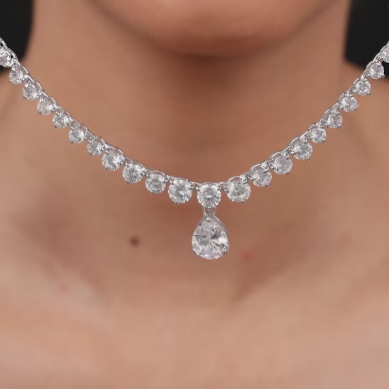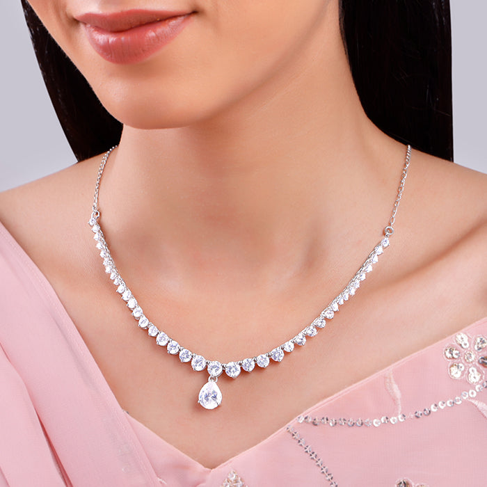 Some pieces whisper confidence, and this one does it effortlessly. It features a tennis-style zircon arrangement, and the teardrop accent gives your neckline a fresh, luminous lift.