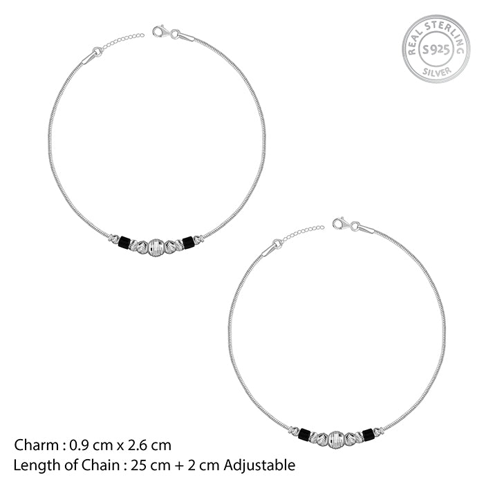 Silver Eclipse Black Bead Anklet